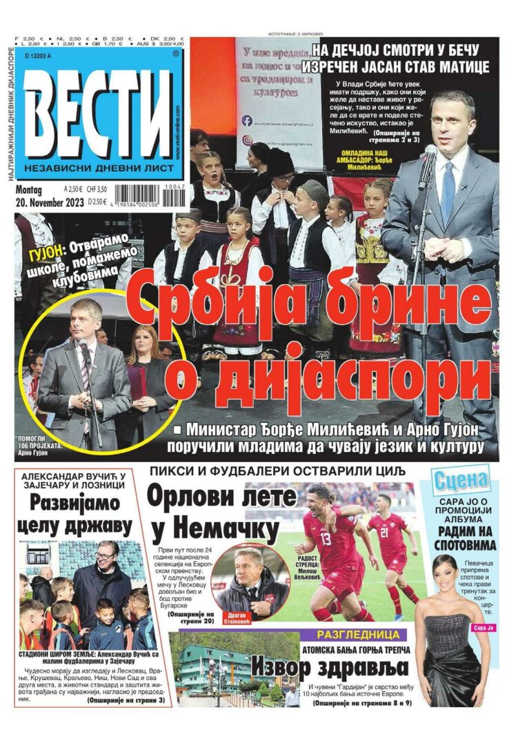 Pregled štampe – ponedeljak 20.11.2023.